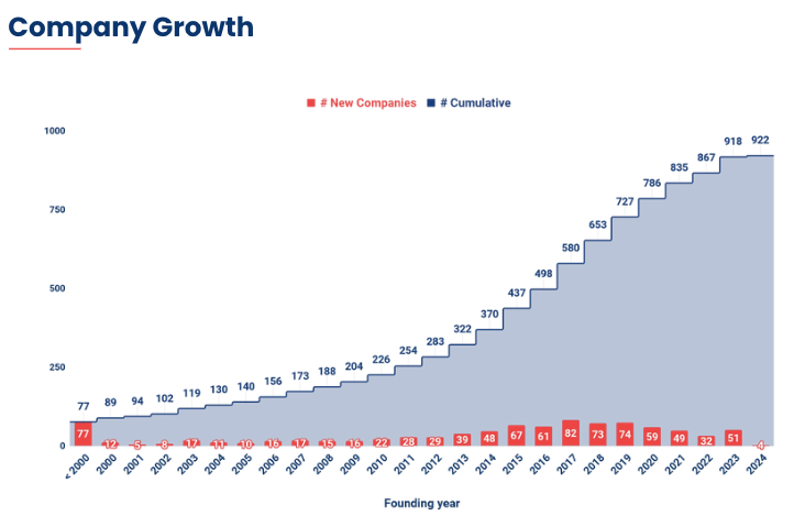 - Growing enterprises: The median headcount is 29 employees, with a significant number of small companies.